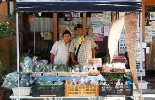 いつも美味しい無農薬野菜を送っていただいている中野じゅんいちさん&かおるさんにお越しいただき、エマーブルの店前で