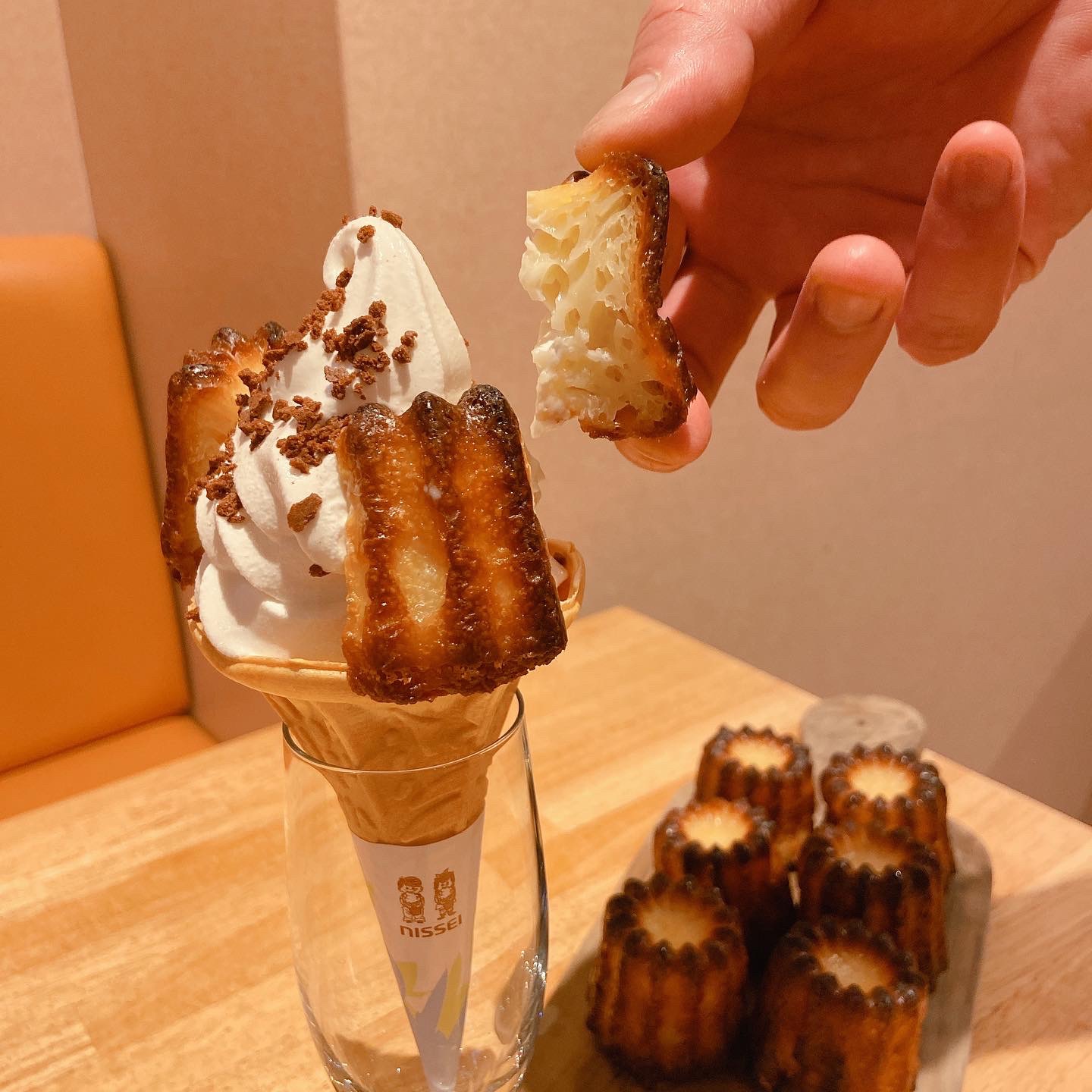 エマーブルで人気のもちっとしたカヌレにソフトクリームが染み込んで、美味しさ倍増です。