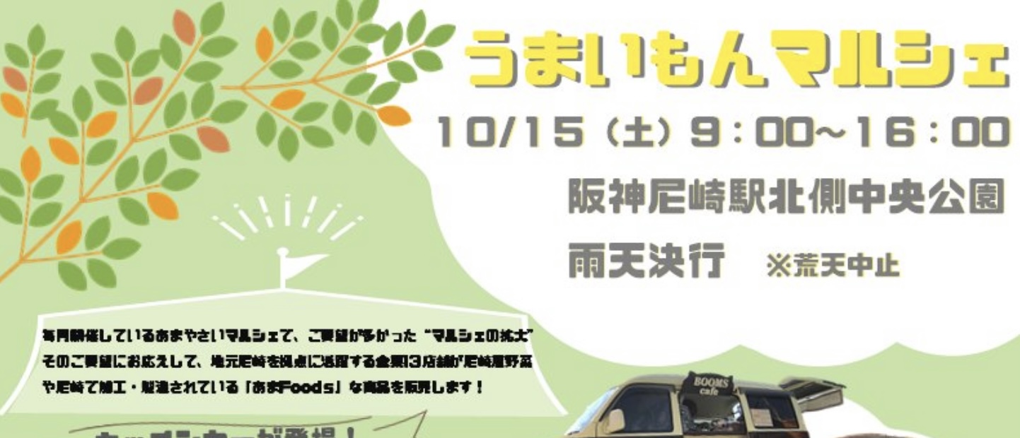 ★10月15日(土) 休業 イベント出店 「うまいもんマルシェ」中央公園(阪神尼崎駅北側すぐ) 10時〜16時