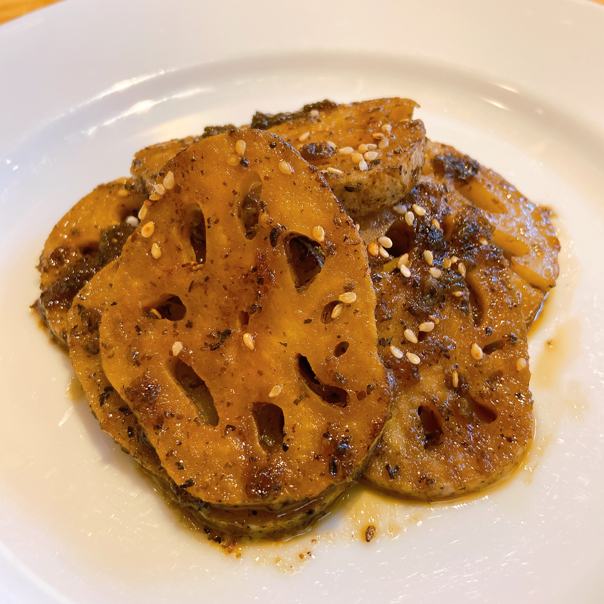 1.レンコンを5mm幅ぐらいの輪切りにする。