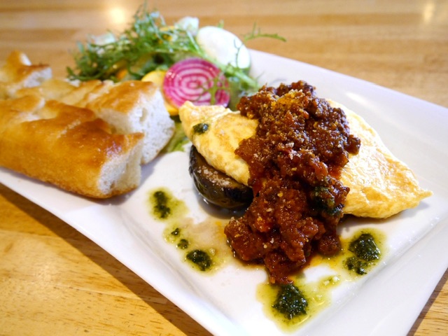 ①まっさんナスとオムレツのミートソースがけ! 2100円(税込)