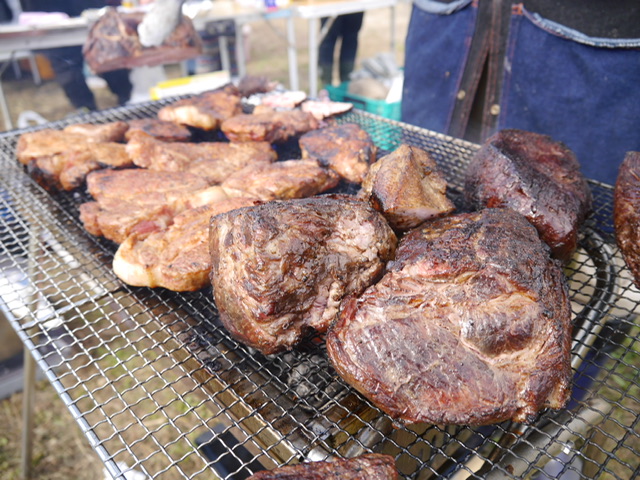 お昼ごはんは畑でバーベキュー。高見シェフがお肉の塊を豪快に焼いちゃいます!