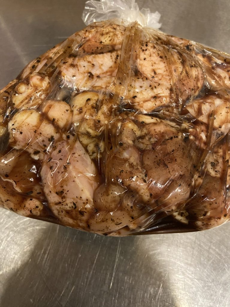 1.ボールにバーベキューソース、オールスパイスをいれまぜる。