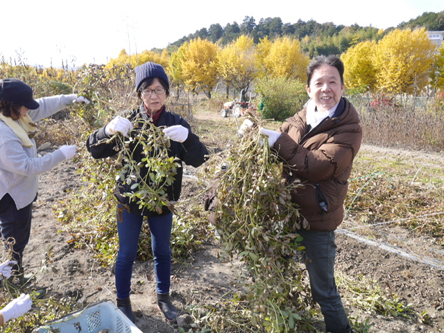 🐰「今年は出来がよかったです。株を引き抜くと2粒入りの大きなさやがじゃらじゃら付いていて、摘み取っていて嬉しくなりました。」