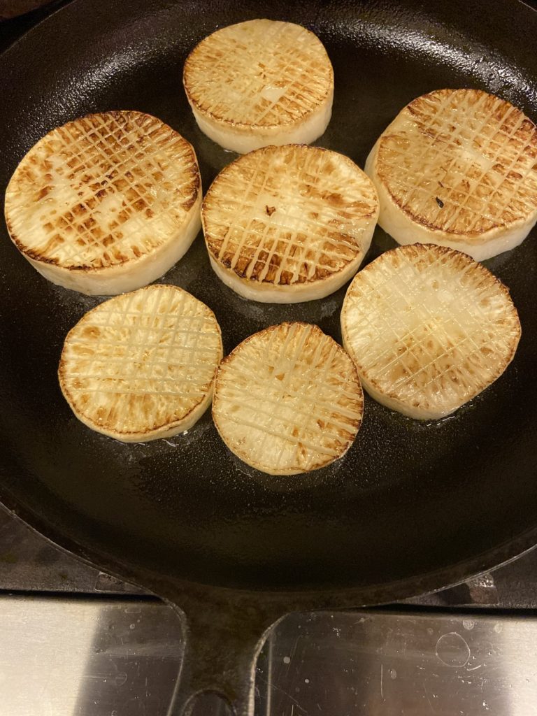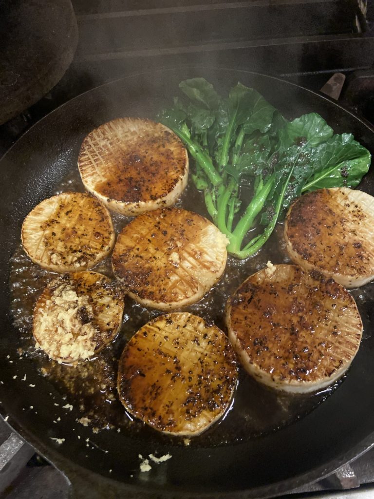 「大根のステーキ、生姜風味」