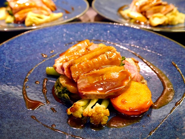 「近江鴨のポワレ、オレンジソース」