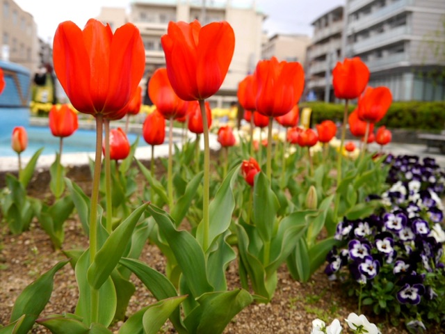 武庫之荘駅前のロータリーのチューリップが見頃なので撮りに行ってみました